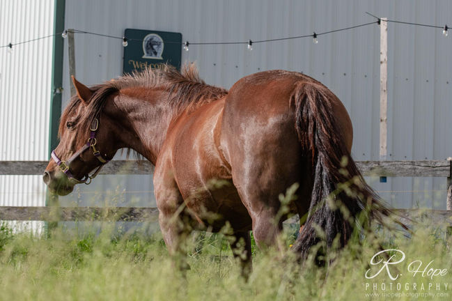 Motion is a gorgeous and charismatic mare with lots of personality. Her confident and brave disposition makes her a pleasure to work with. Motion was restarted under saddle with Churchill Chimes Equestrian Centre (sister business to Donalf Farms), and proved to be a beautiful mover and a very fast learner. Unfortunately, Motion's breedings in 2020 and 2021 were unsuccessful, which is not uncommon for a more mature, maiden mare. While we are disappointed that we were unable to get a foal from Motion, we are enjoying this lovely girl under saddle.